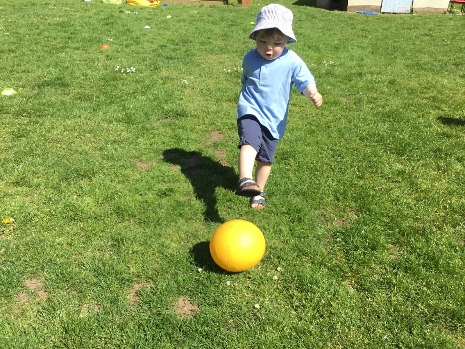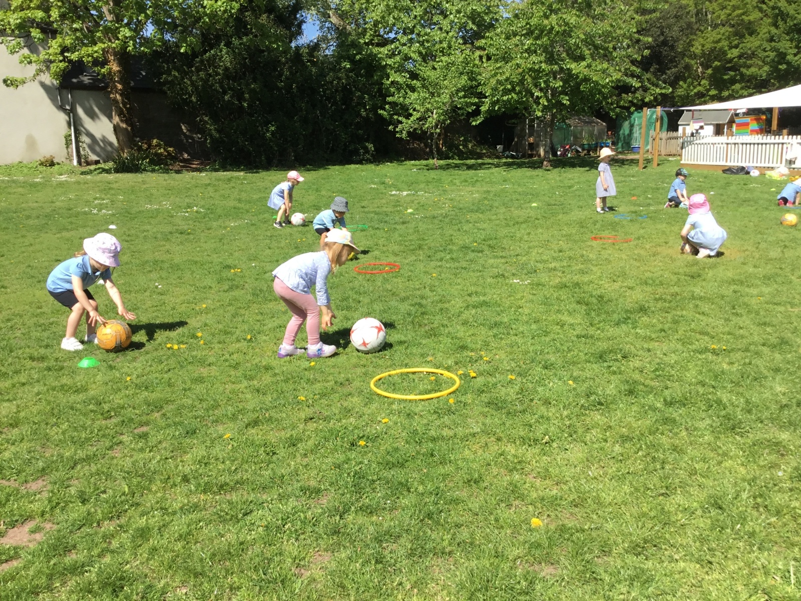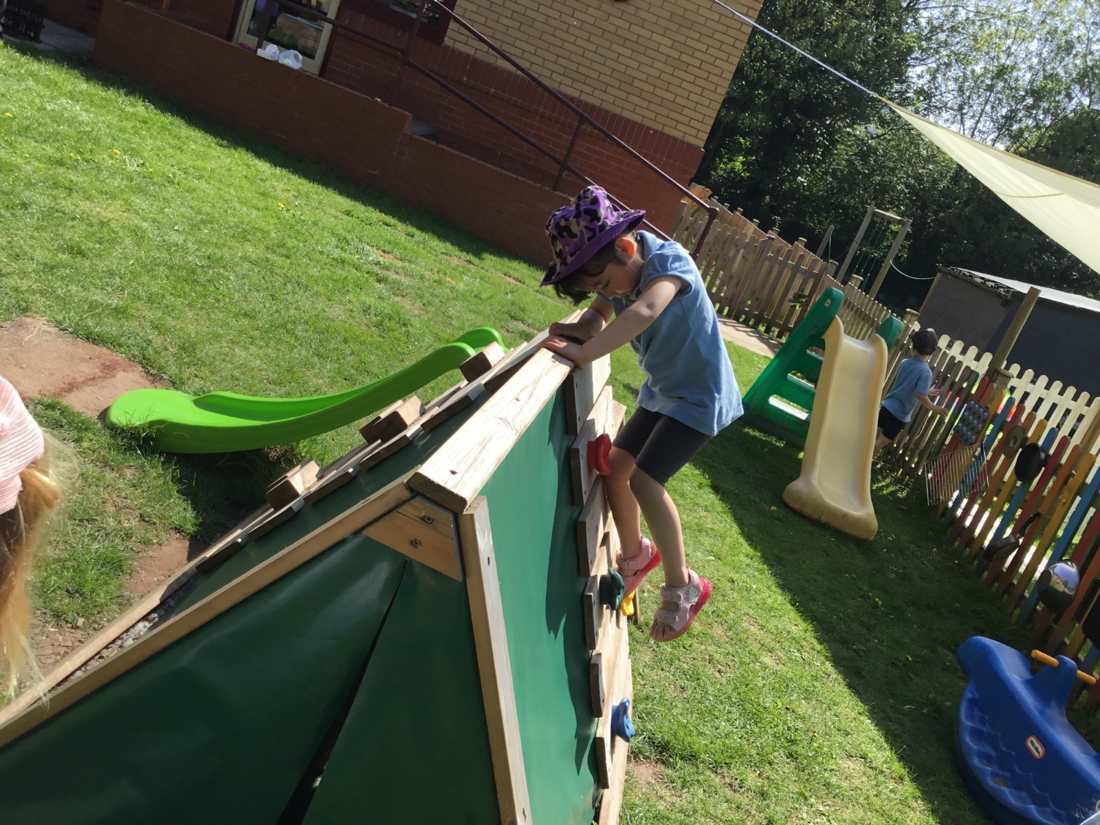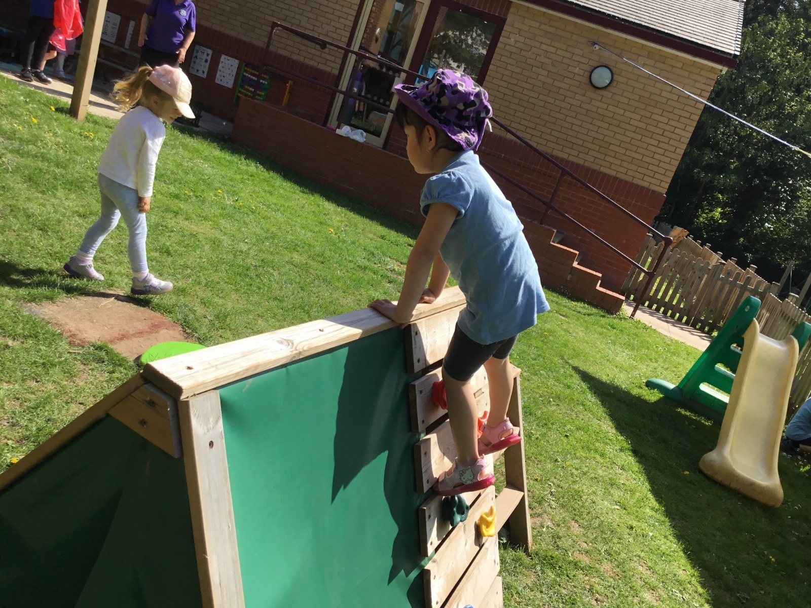 Physical development supports a child’s overall wellbeing. We offer the children lots of fun physical activities such as ball games where they can choose to kick or throw the ball to their friend. Bean bag toss, an obstacle course, and we always have a climbing structure available to the children.