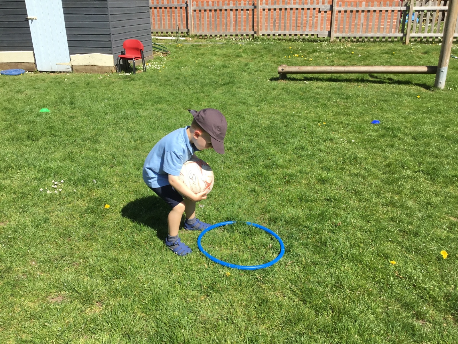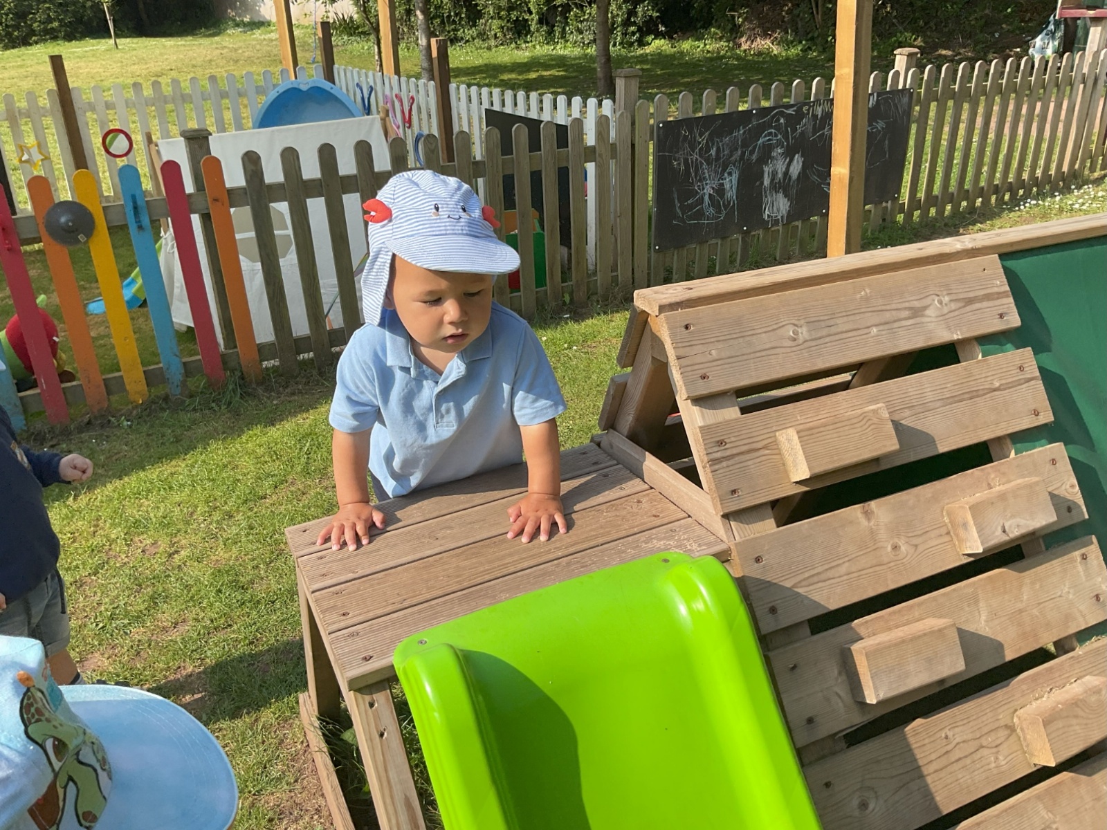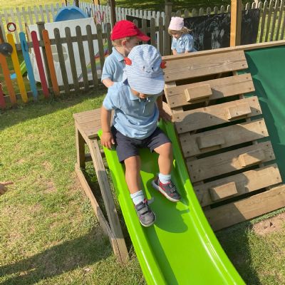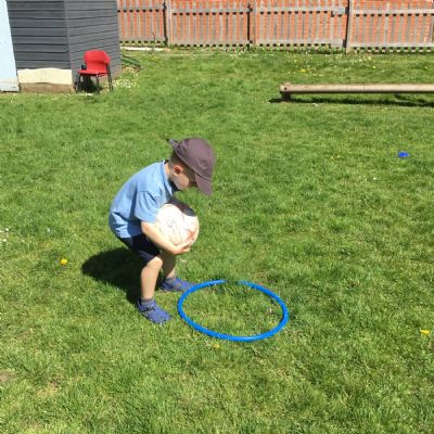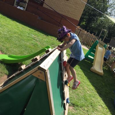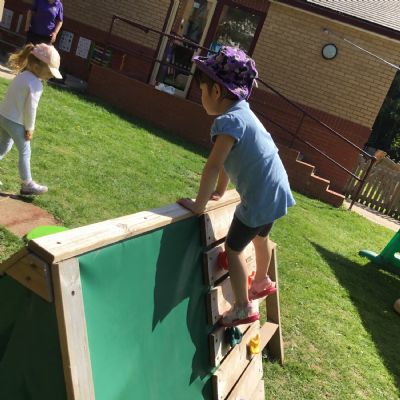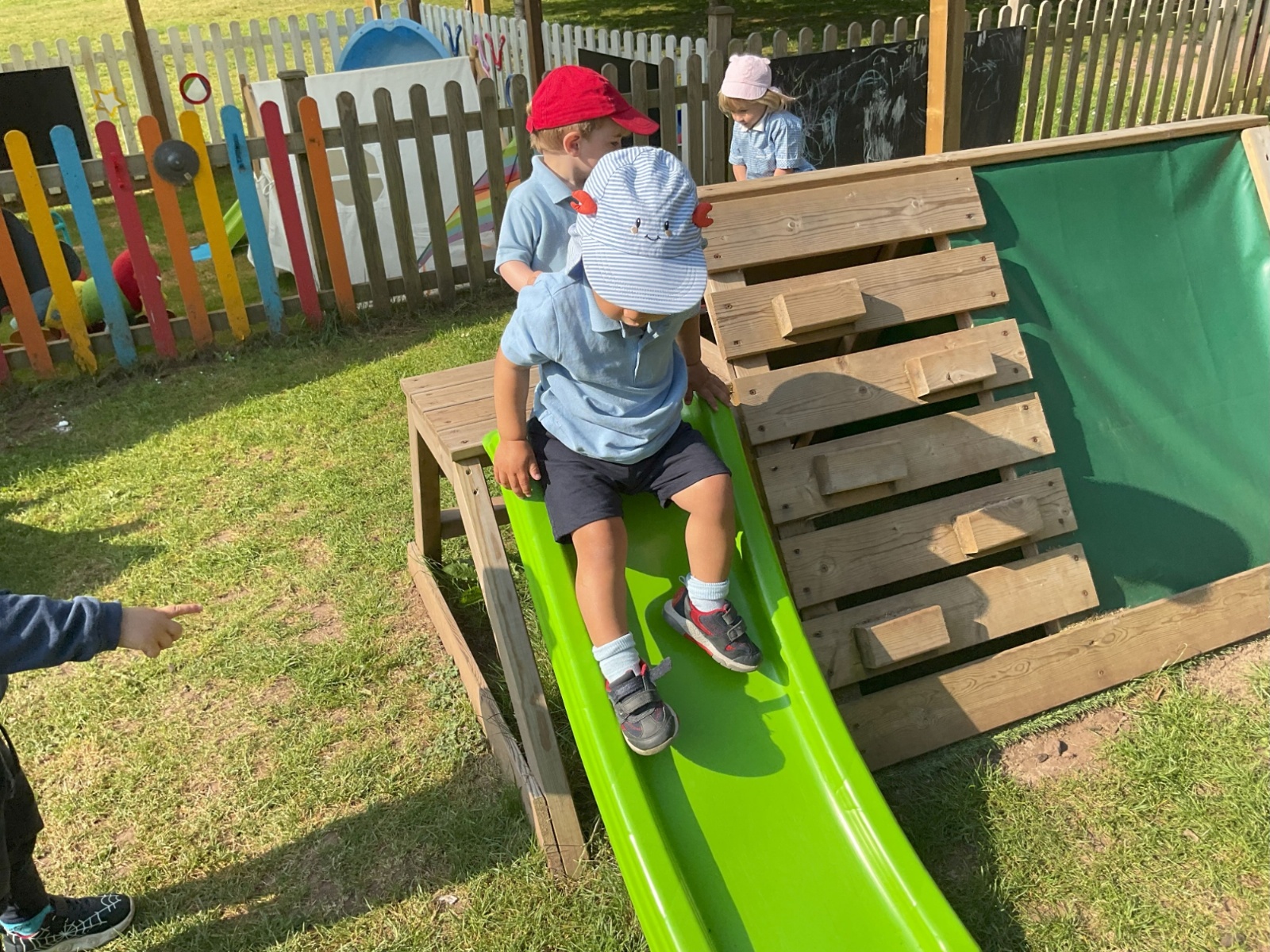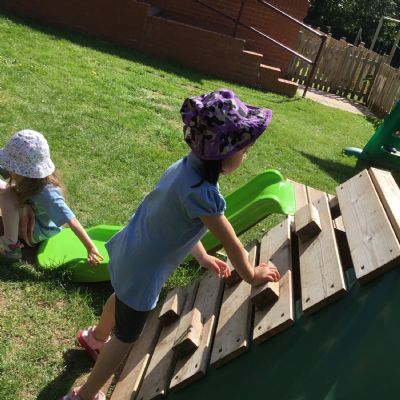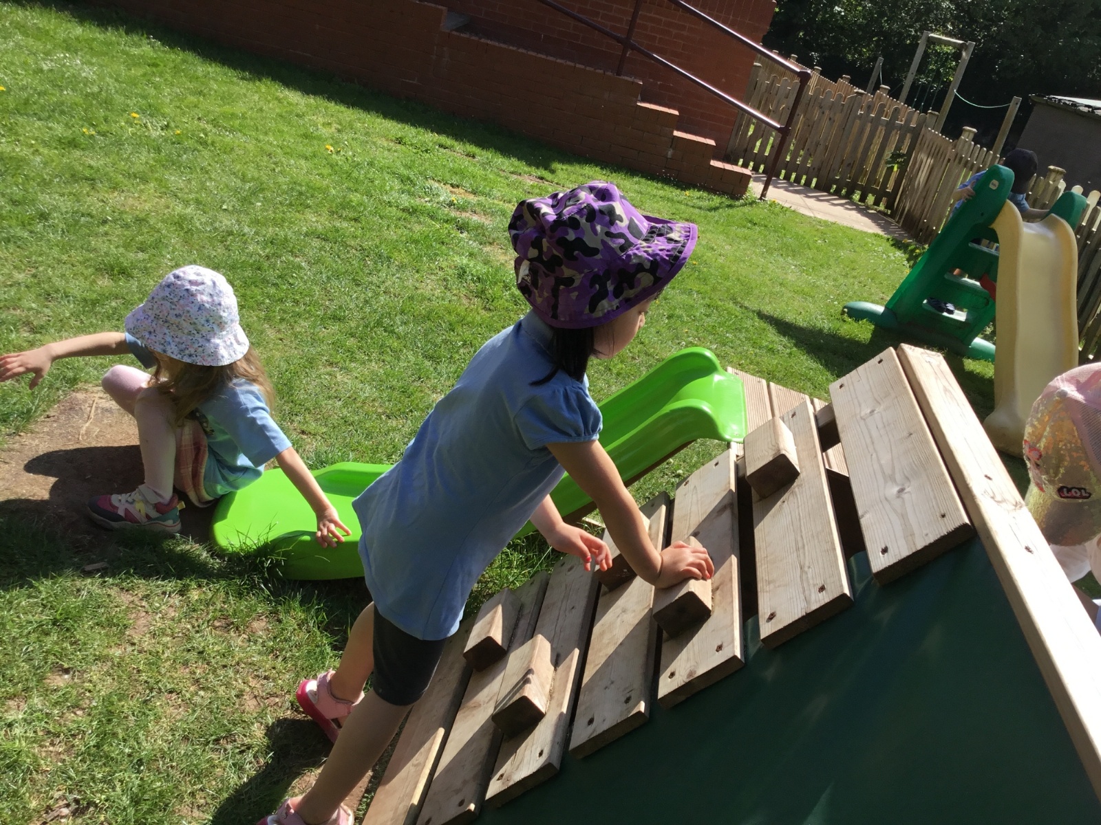 Physical development supports a child’s overall wellbeing. We offer the children lots of fun physical activities such as ball games where they can choose to kick or throw the ball to their friend. Bean bag toss, an obstacle course, and we always have a climbing structure available to the children.