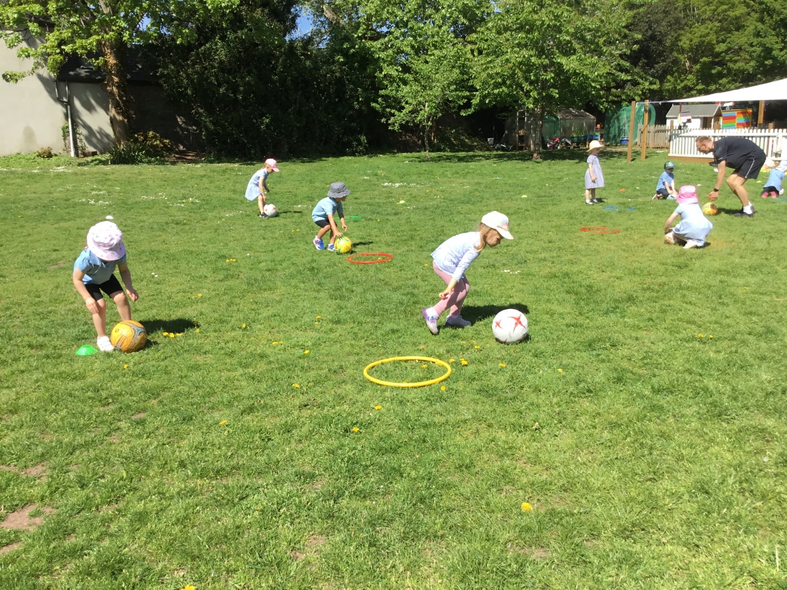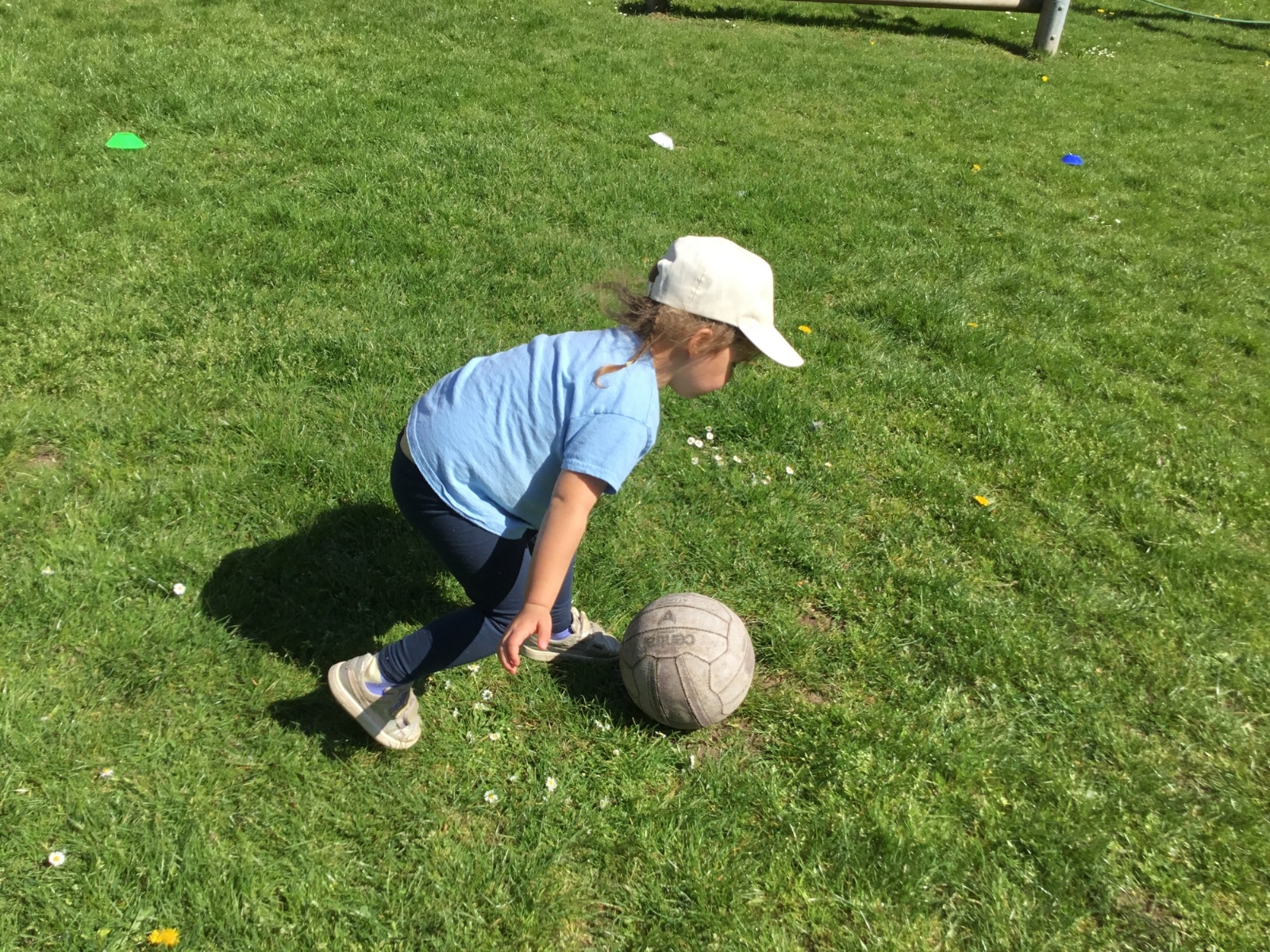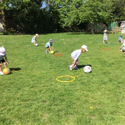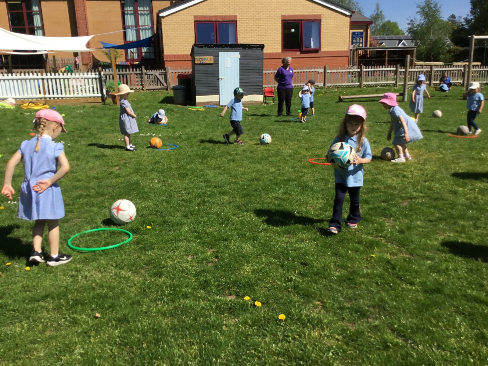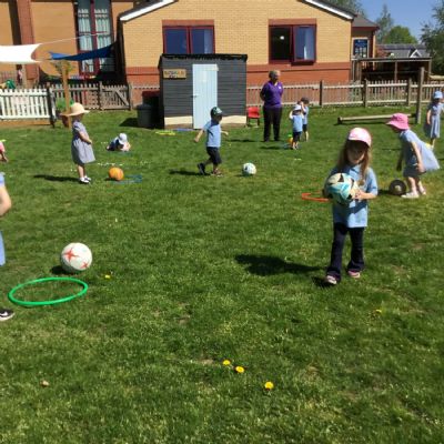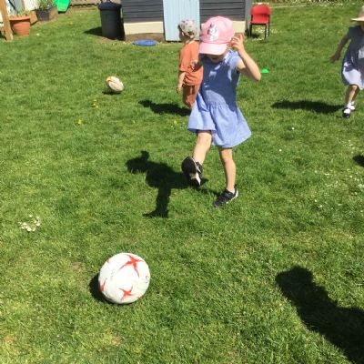 Physical development supports a child’s overall wellbeing. We offer the children lots of fun physical activities such as ball games where they can choose to kick or throw the ball to their friend. Bean bag toss, an obstacle course, and we always have a climbing structure available to the children.