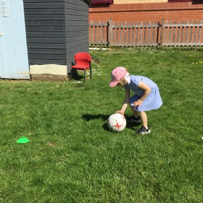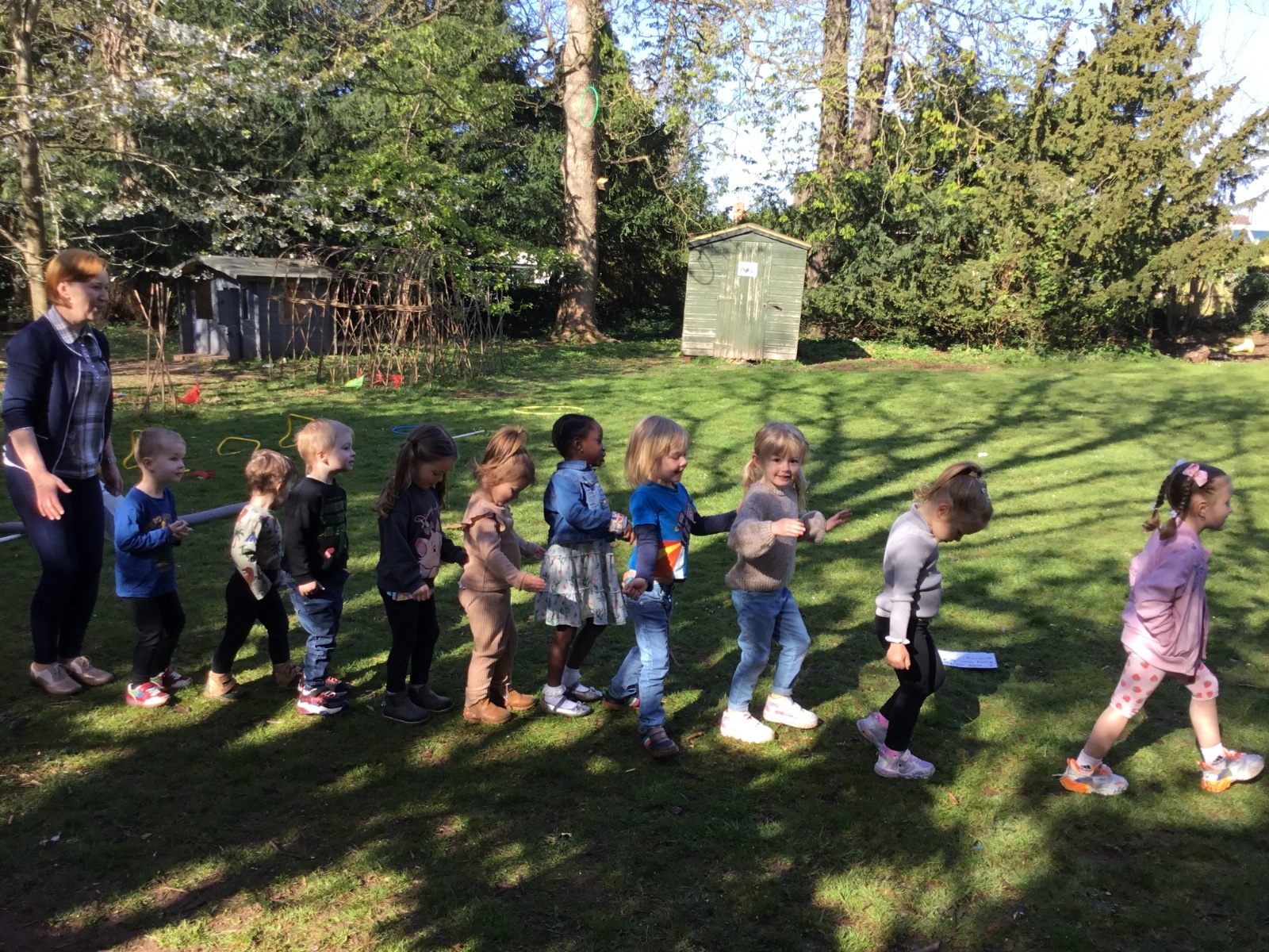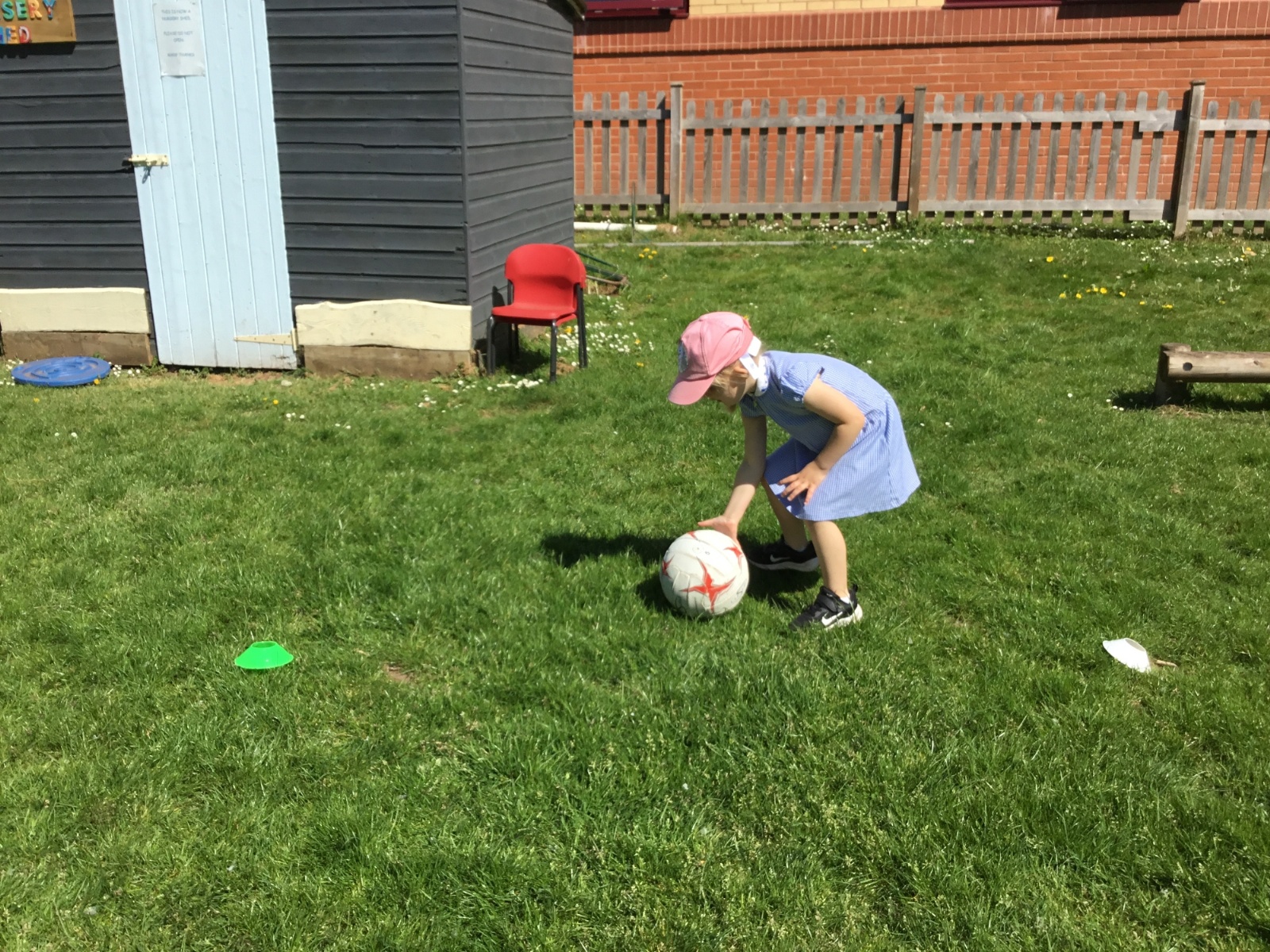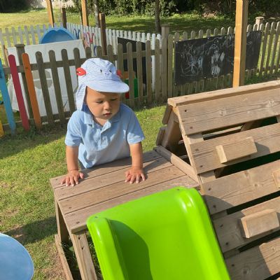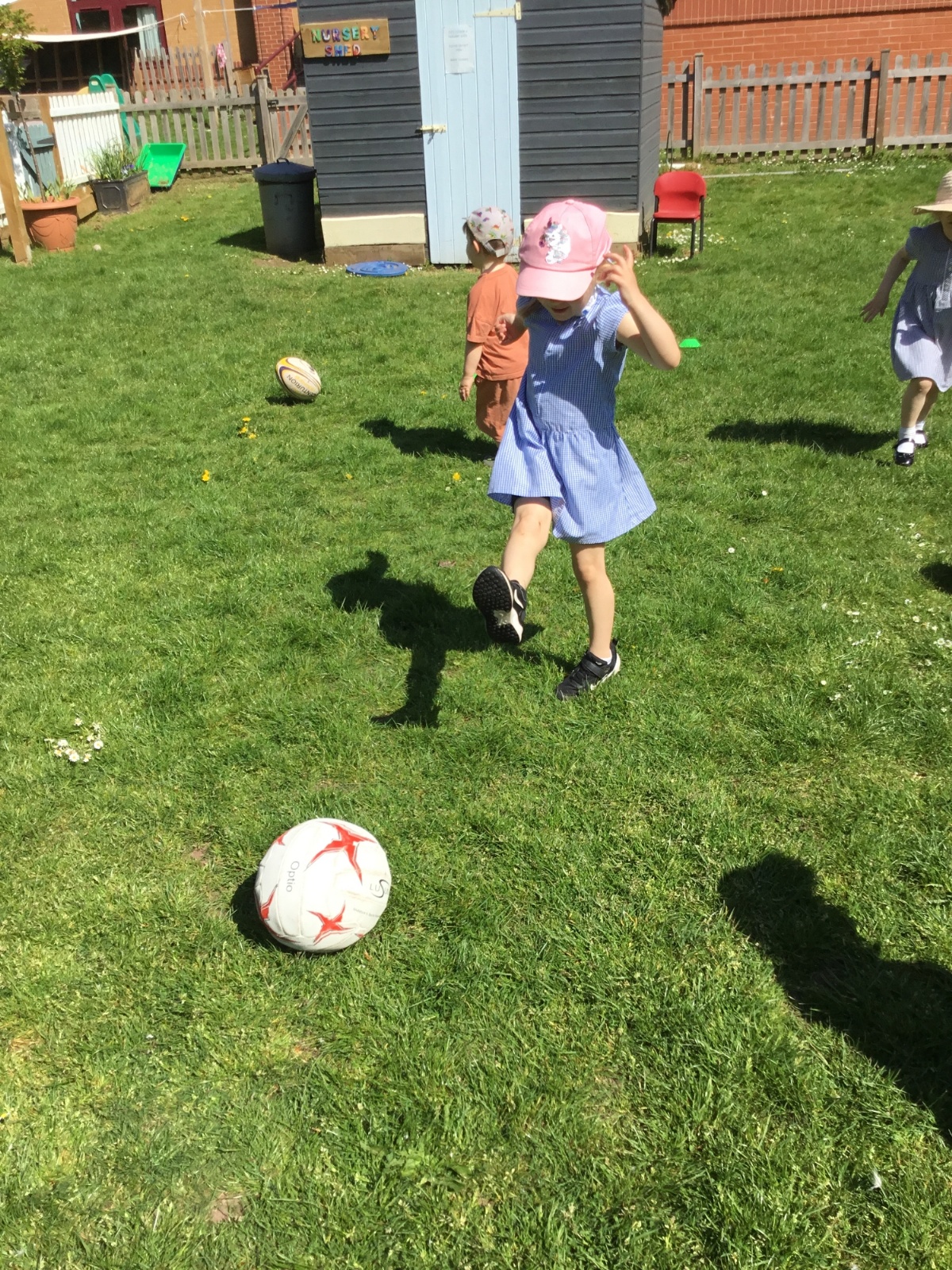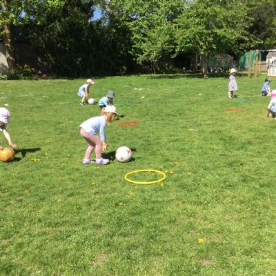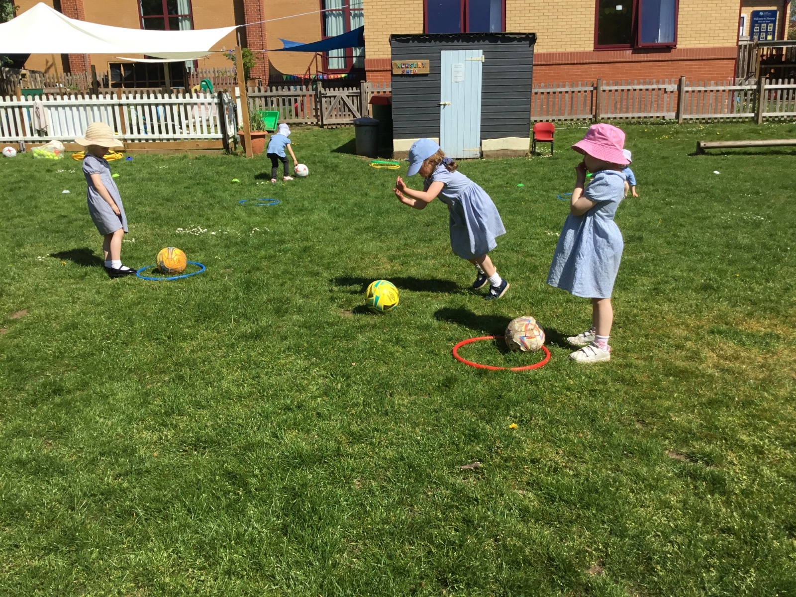 Physical development supports a child’s overall wellbeing. We offer the children lots of fun physical activities such as ball games where they can choose to kick or throw the ball to their friend. Bean bag toss, an obstacle course, and we always have a climbing structure available to the children.