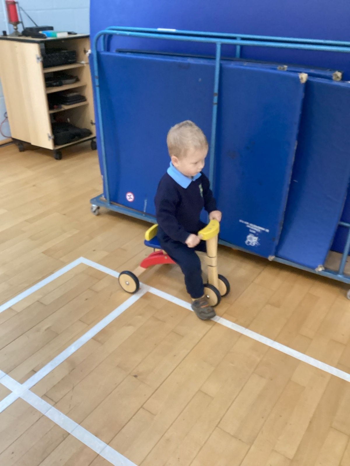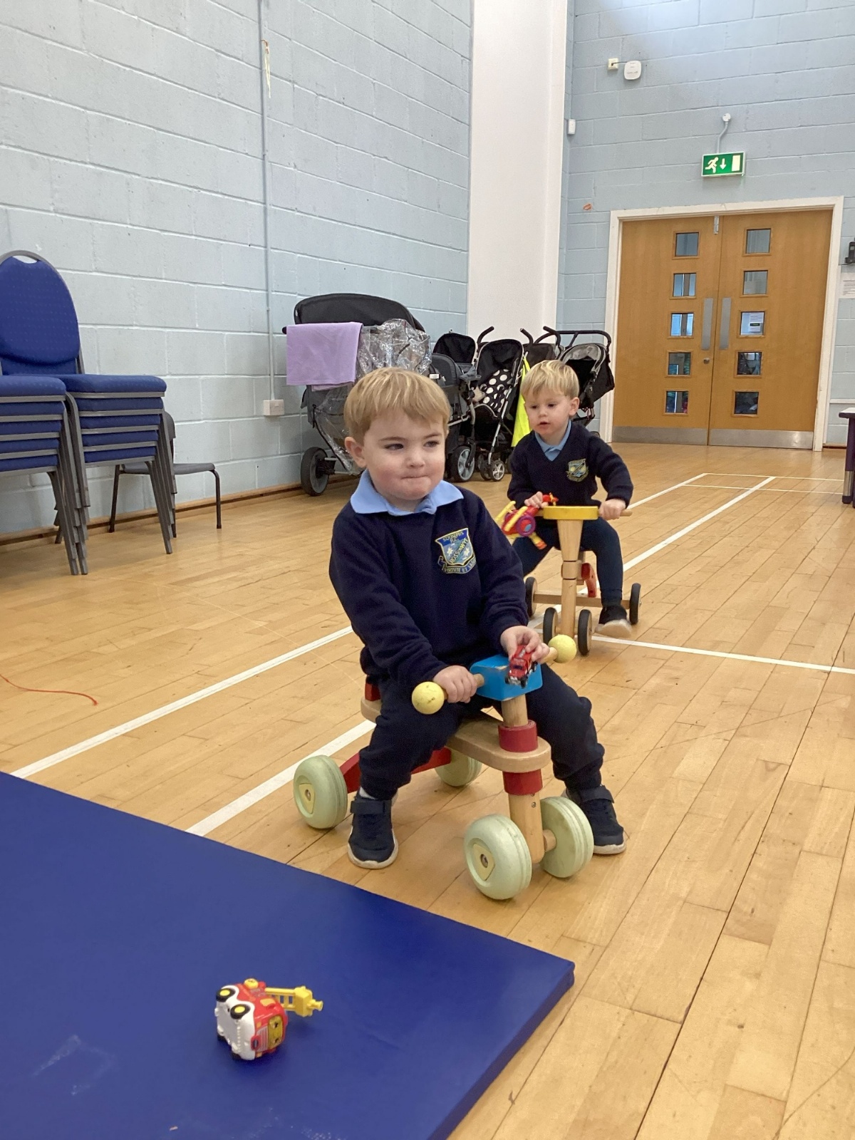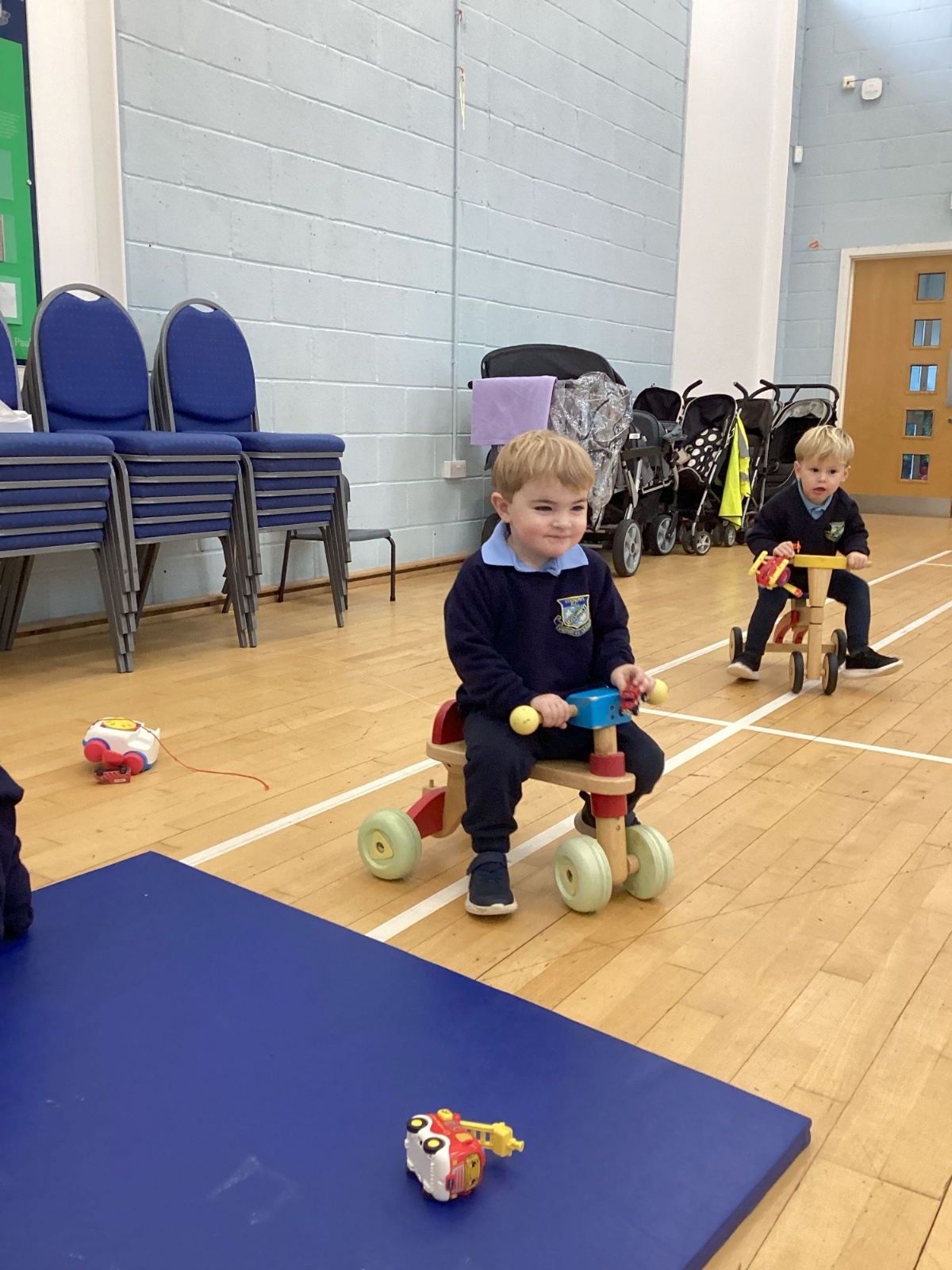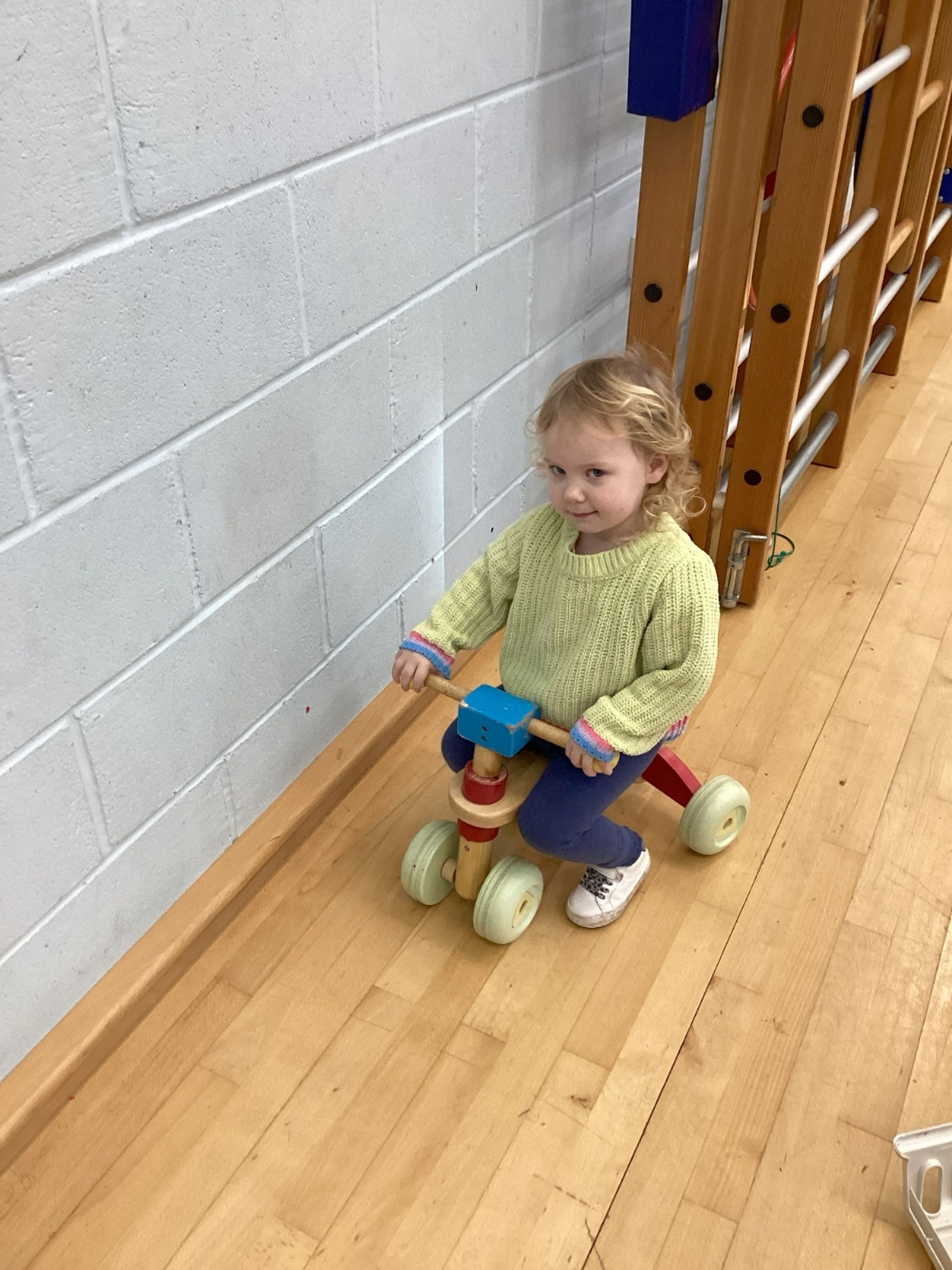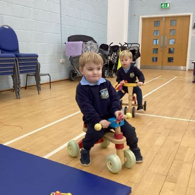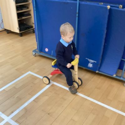 The children really enjoy riding the push-along cars, balance bikes and scooters around the track on the playground.