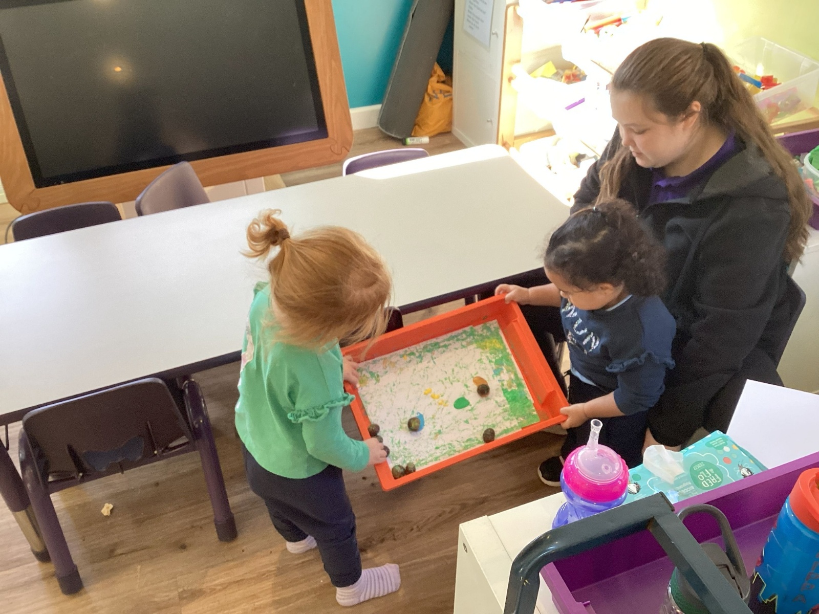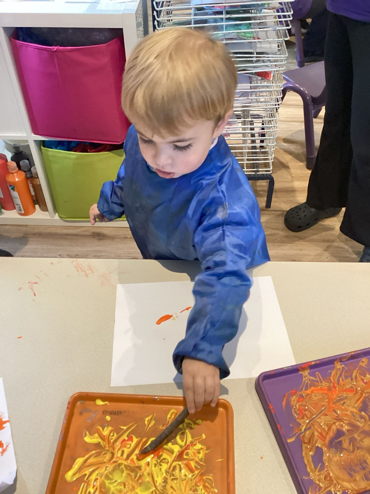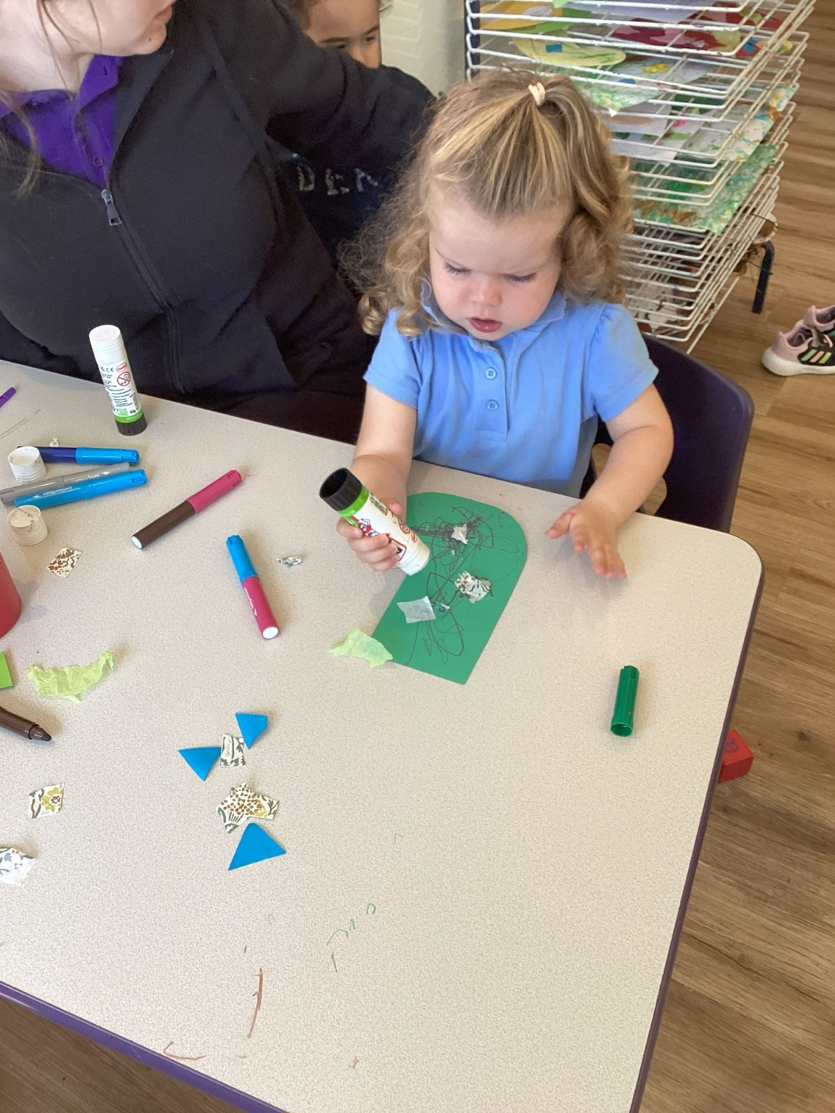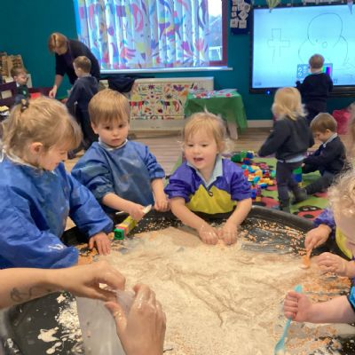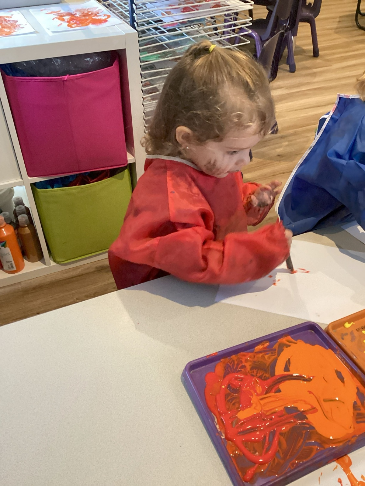 We also promote literacy by mark making. The children mark make in lots of different ways such as in messy play with shaving foam, sand or gloop - enjoying the sensory experience of making marks. The children also use pencils and crayons on paper and colouring sheets.