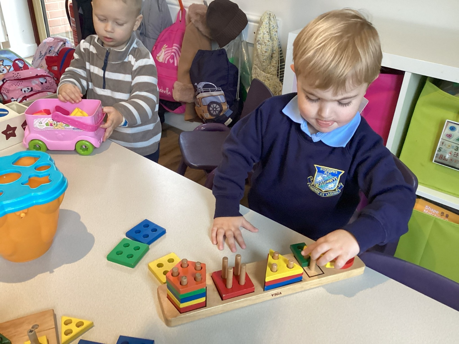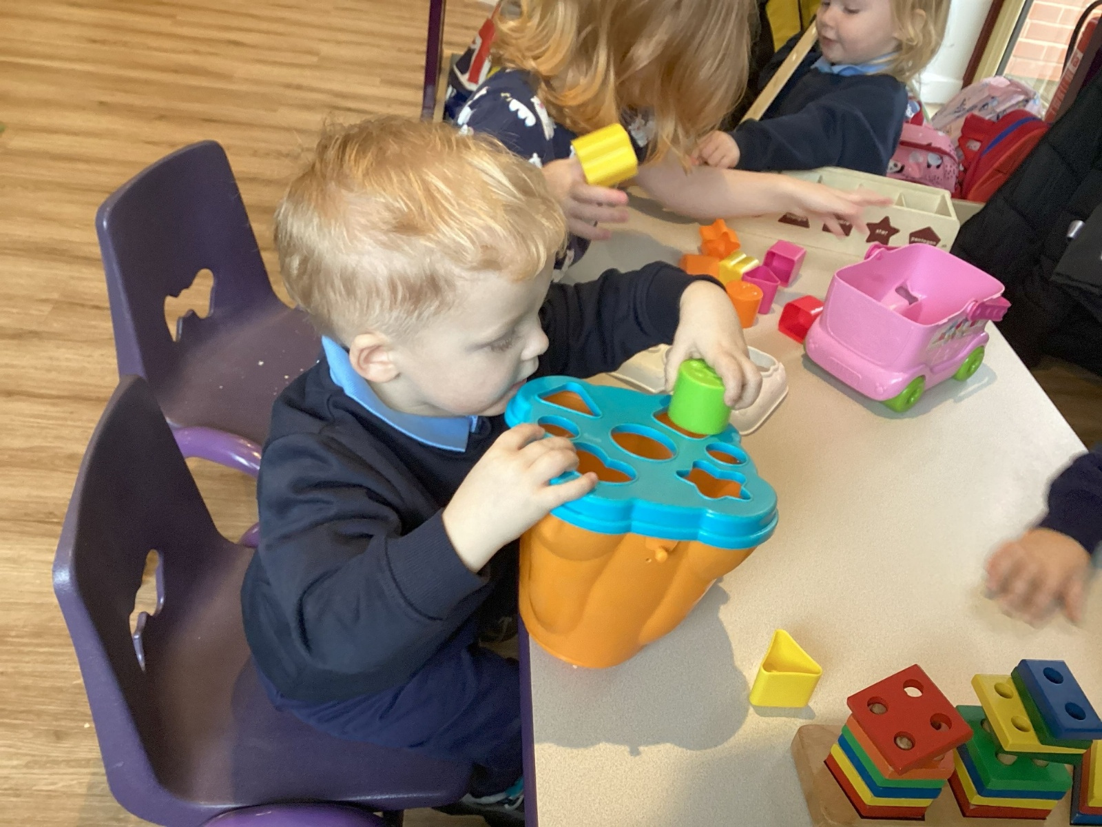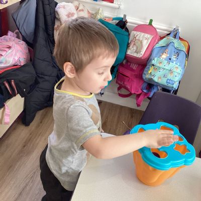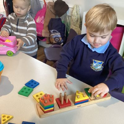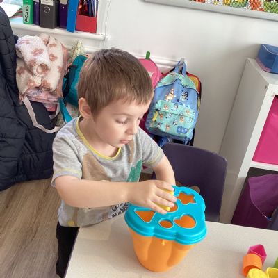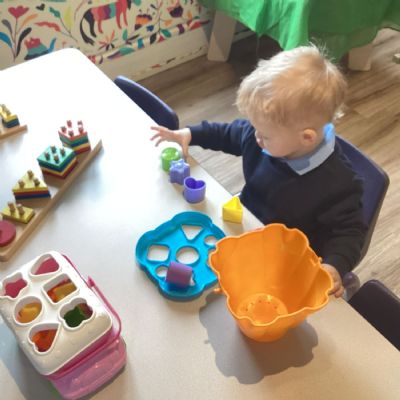 The children have also enjoyed playing with the shape sorters and are starting to name the shapes as they push them through.