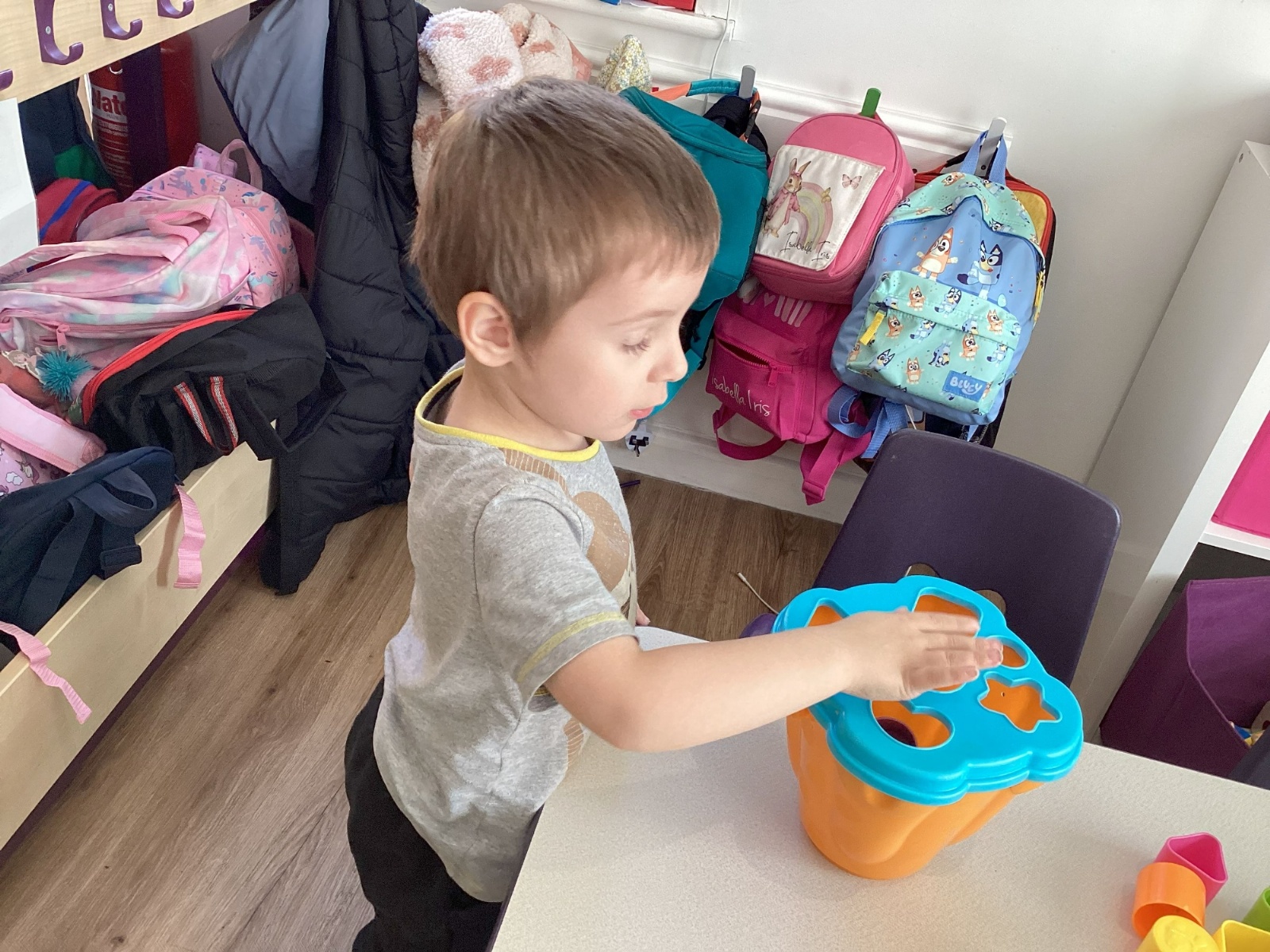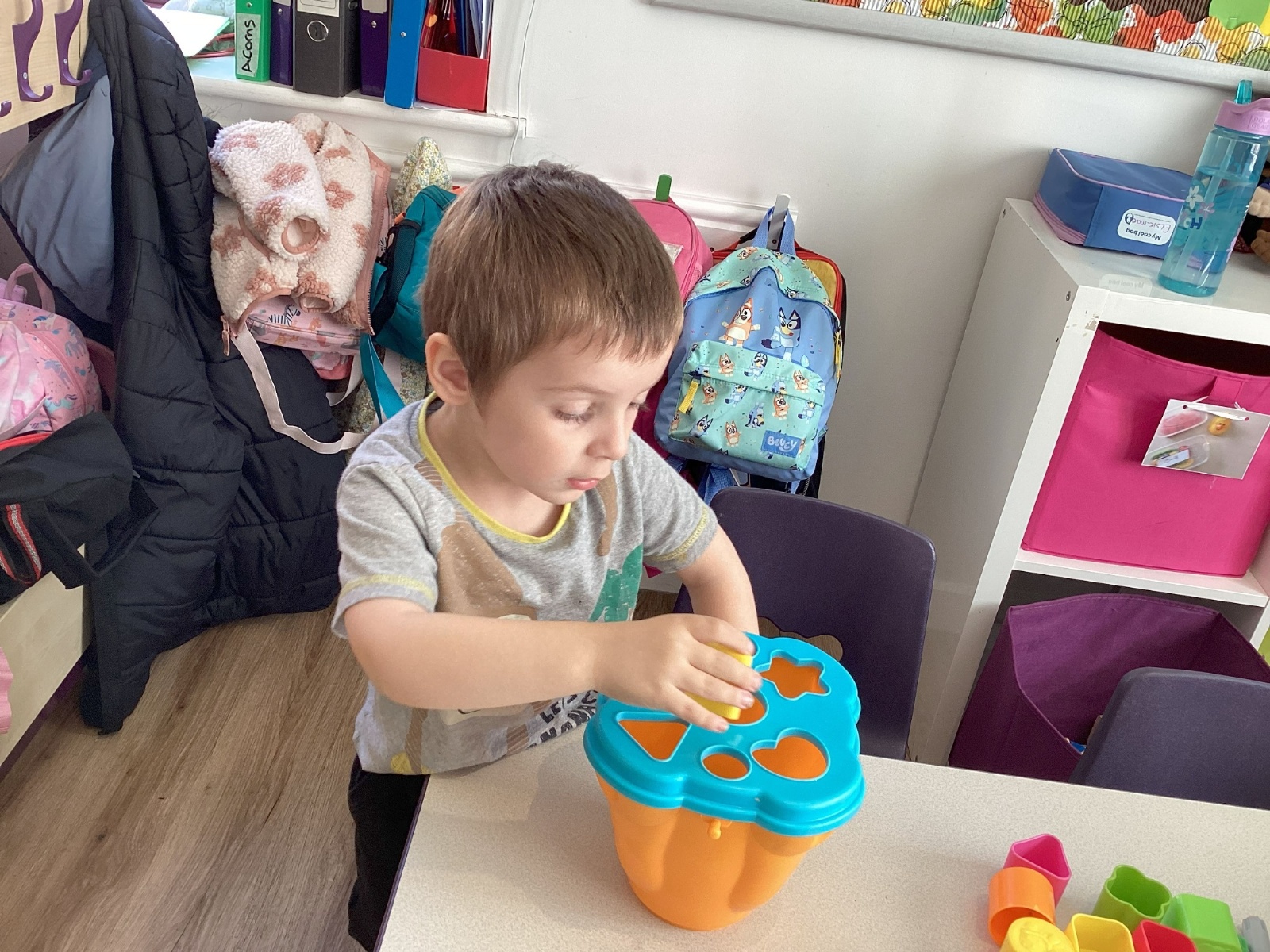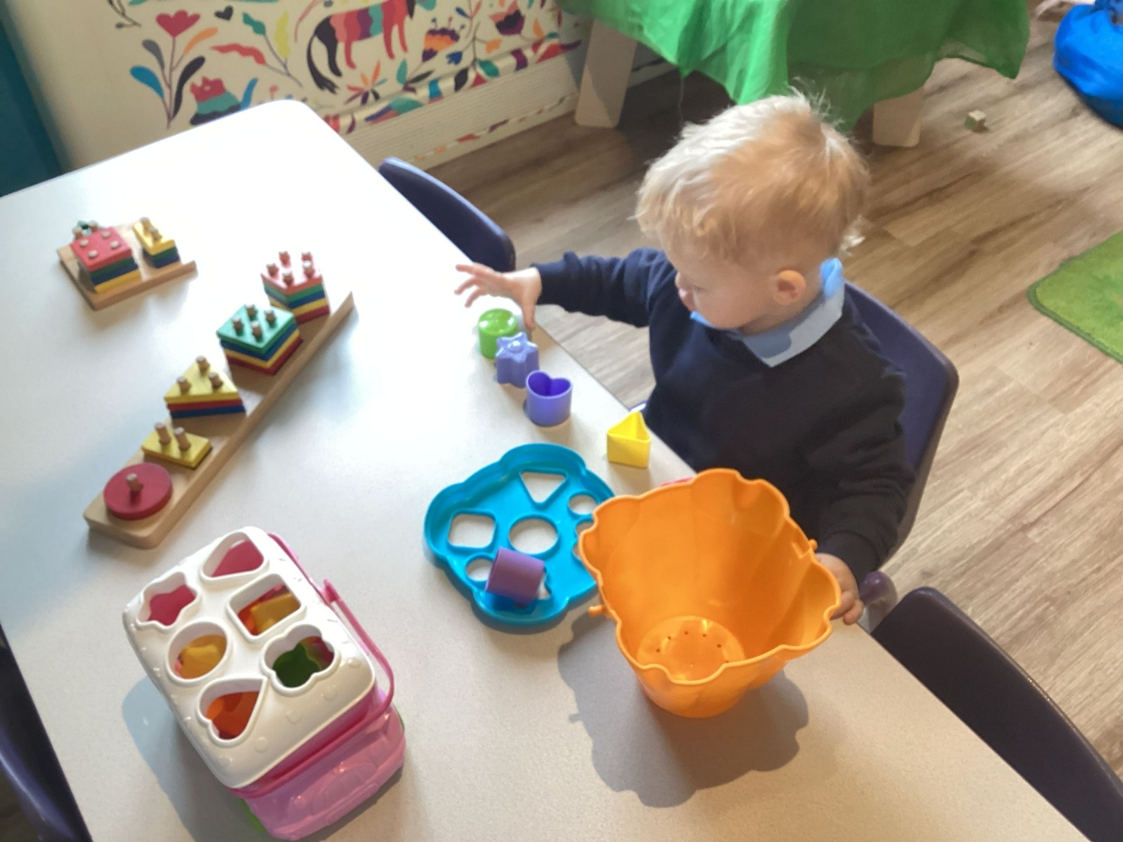The children have also enjoyed playing with the shape sorters and are starting to name the shapes as they push them through.