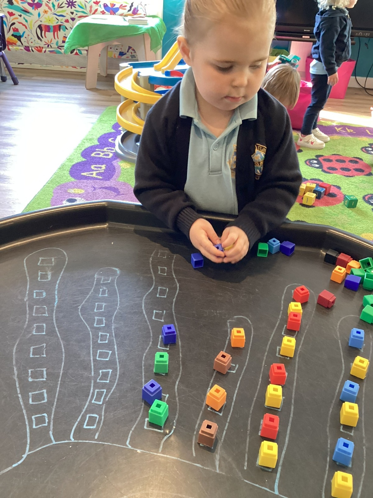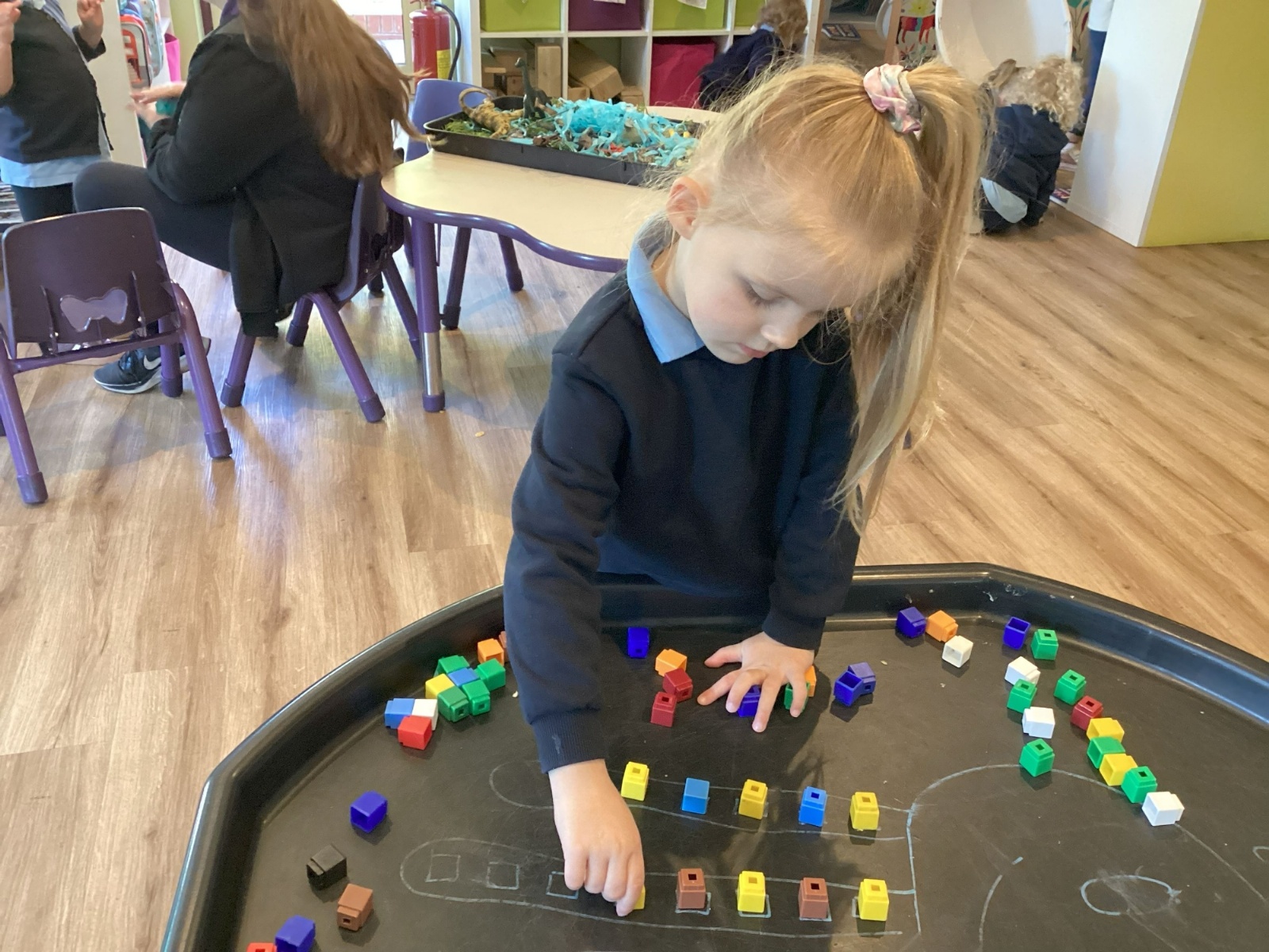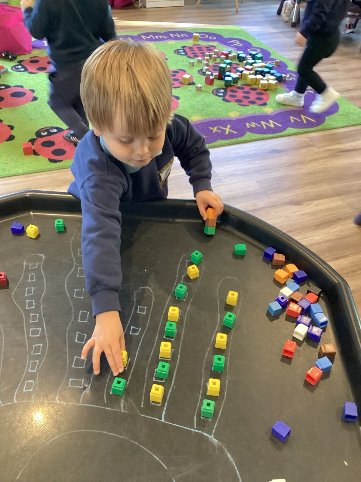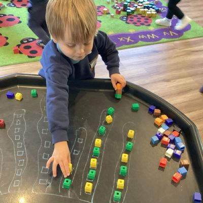 The children have really been enjoying our maths tuff trays this half-term. In our most recent tray, the children have been using unifix blocks to continue an AB pattern. The Oakleaves have been trying really hard to create their own ABC patterns.