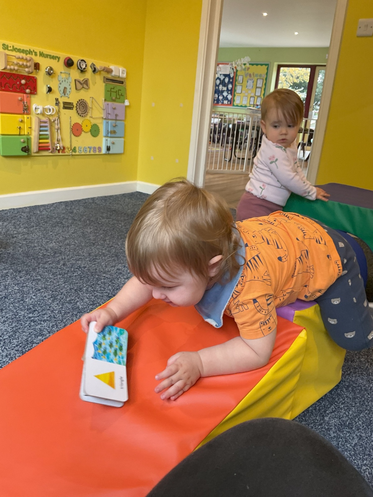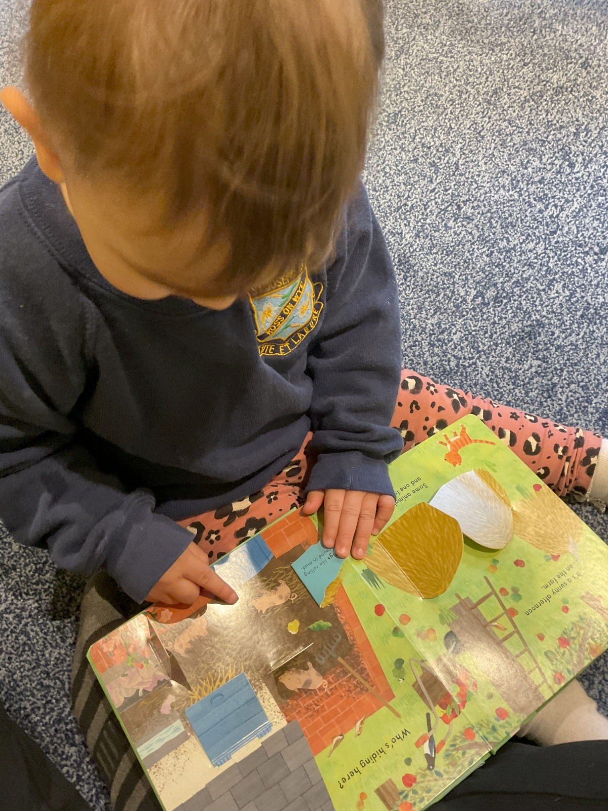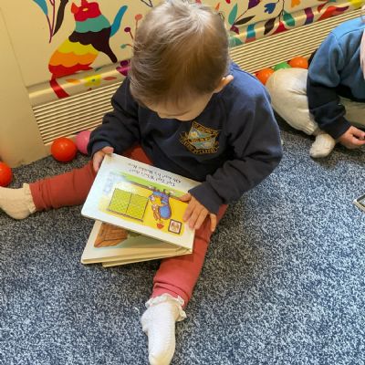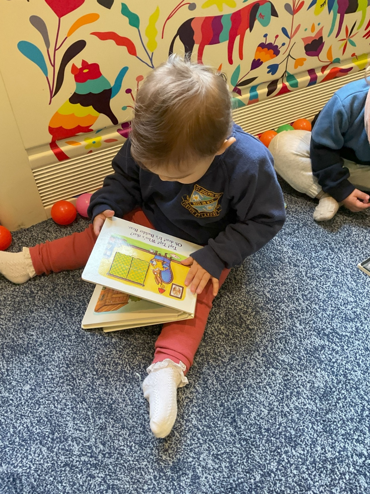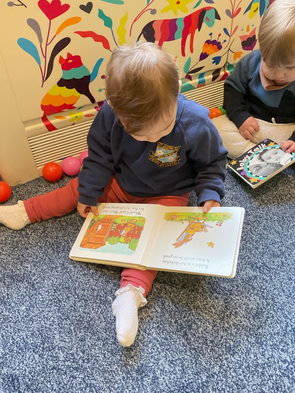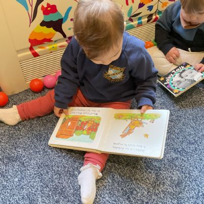 The babies really enjoy sitting down looking through the story books. They really enjoy story time – listening with interest to the sounds adults make whilst reading a story.