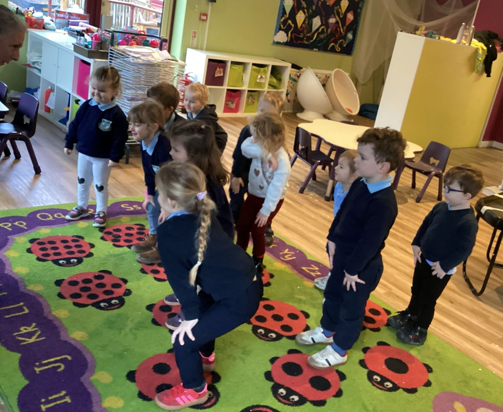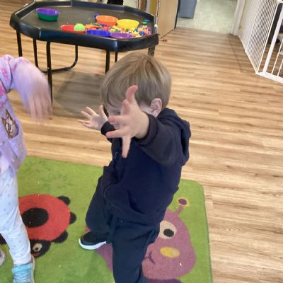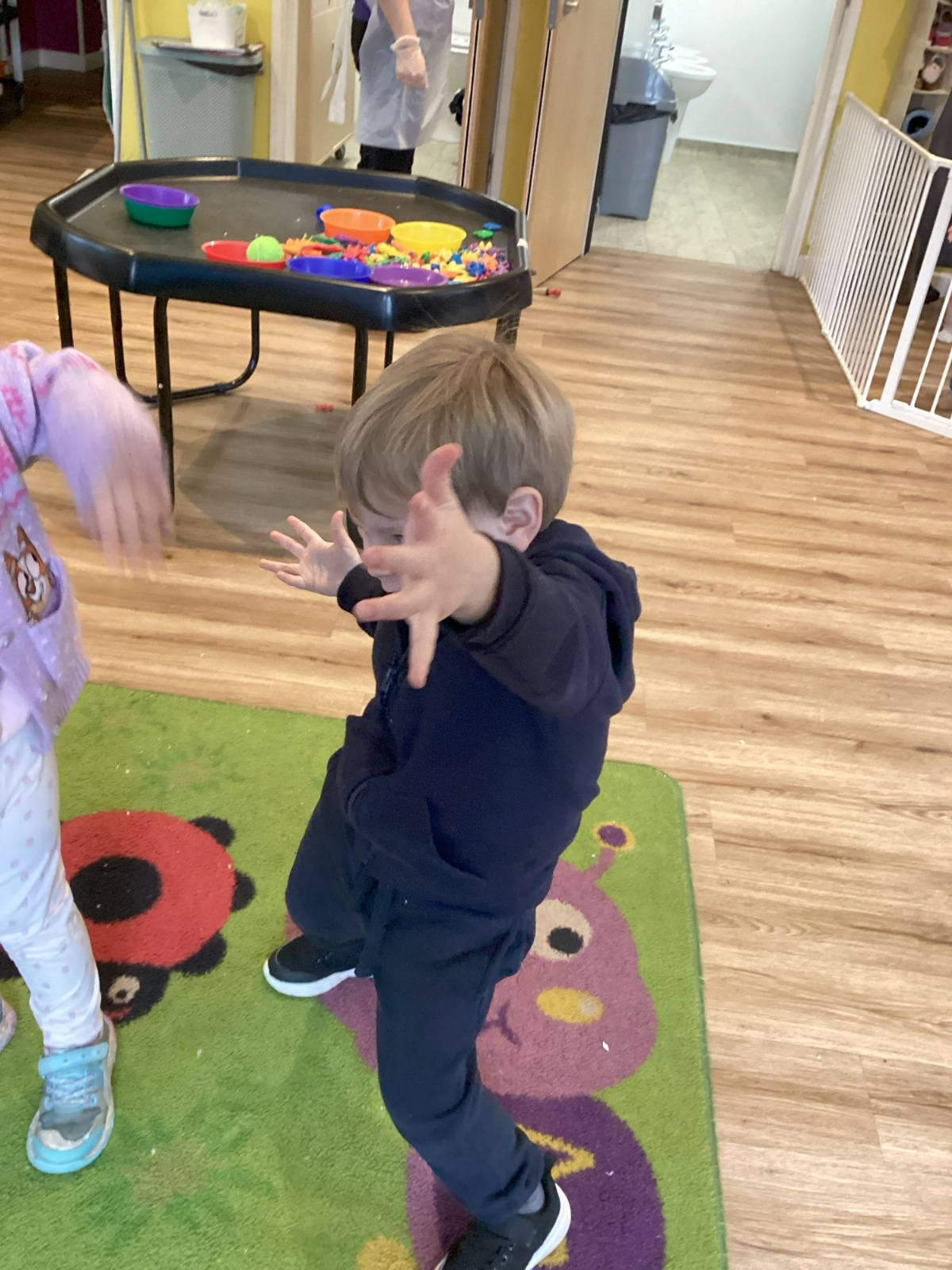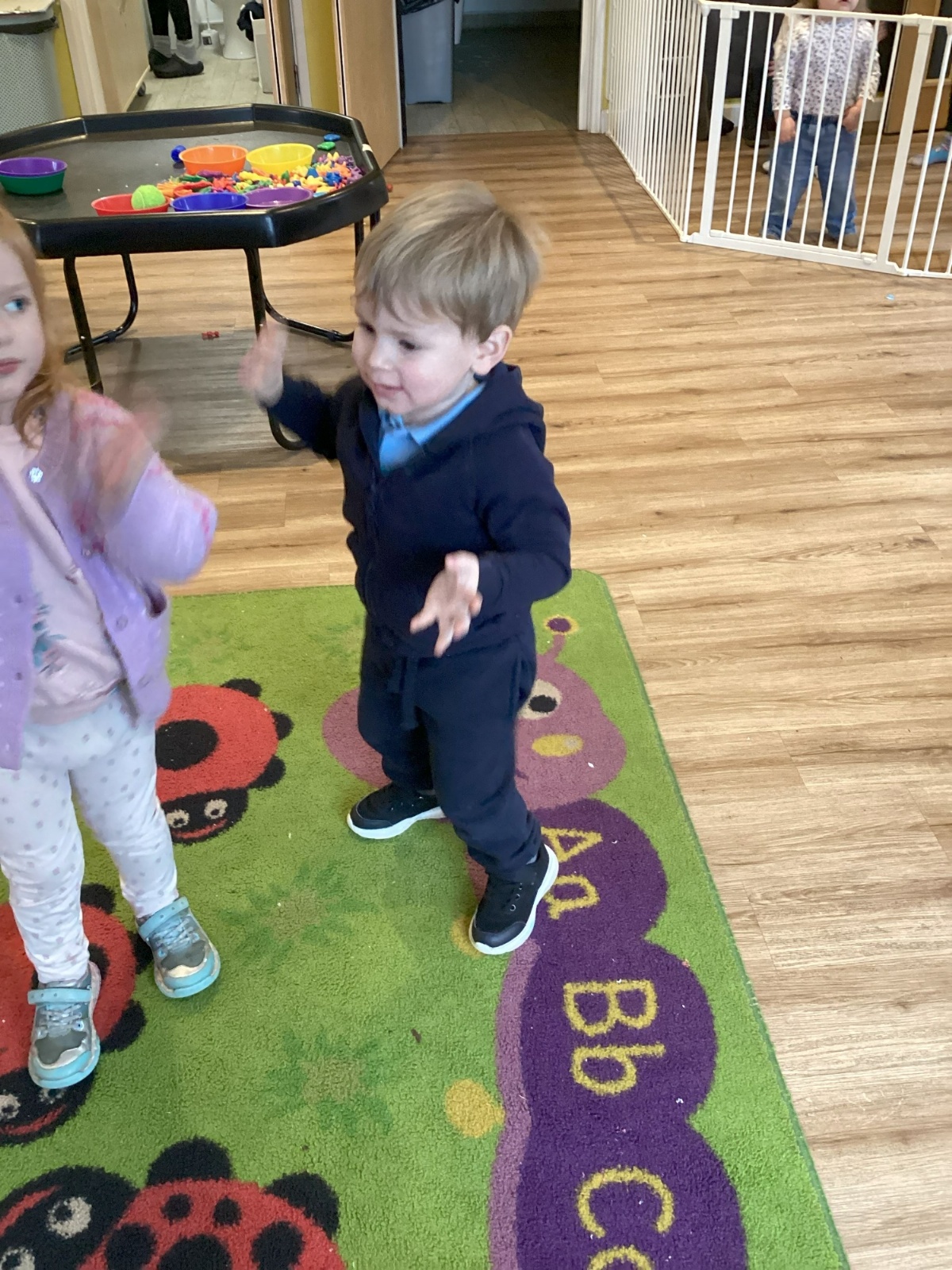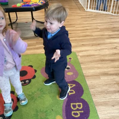 Song time! The children have so much fun dancing and singing along to nursery rhymes! They have shown they can join in with vocalising and copy actions!