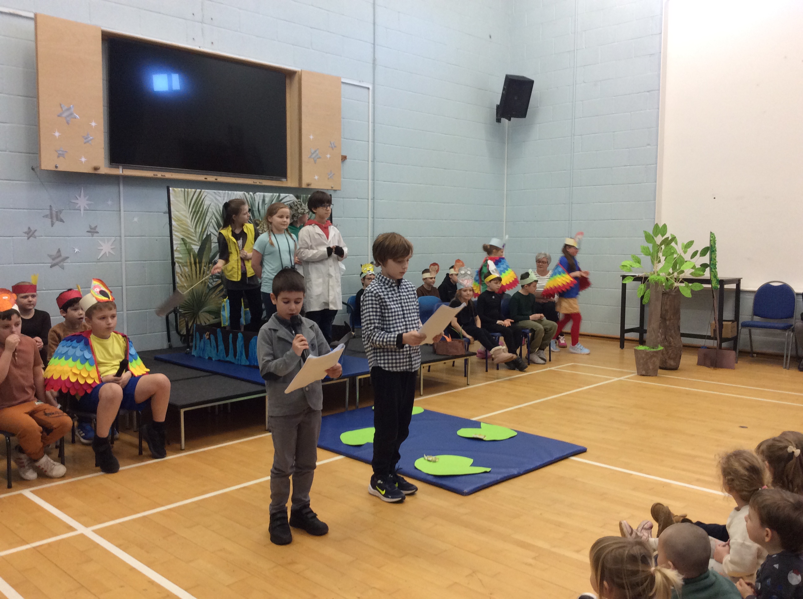 Welcome to Spring Term where the children have already got involved in a variety of activities alongside their class work. We had an amazing outing to the Royal Shakespeare Theatre to watch the BFG being performed. The children absolutely loved it and this inspired them for their own class assembly where they all put on an incredible performance based around our rainforest topic. Not only did they do an excellent job of being different animals but also sang beautifully to entertain all who came. I was super proud of them!